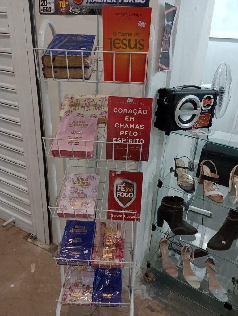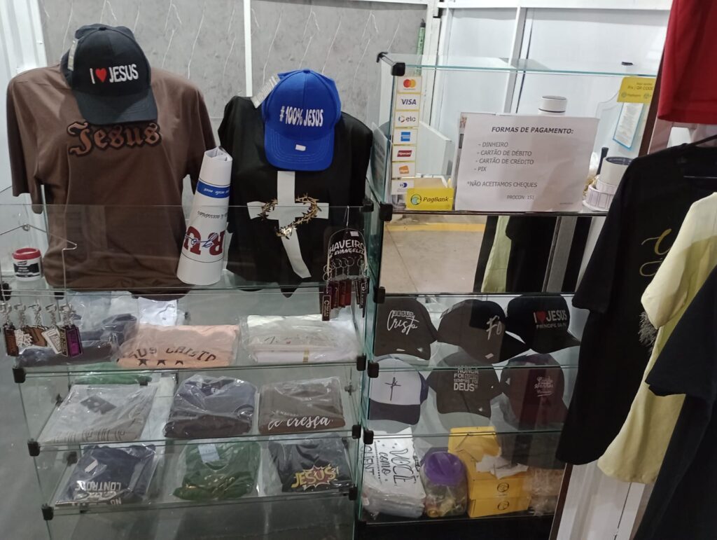 Oferecemos camisetas, bonés, chaveiros, canecas, Bíblias, livros e muito mais.